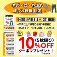 【キズ・穴・やぶれ・ほつれ修理】限定!キャンペーンのお知らせ