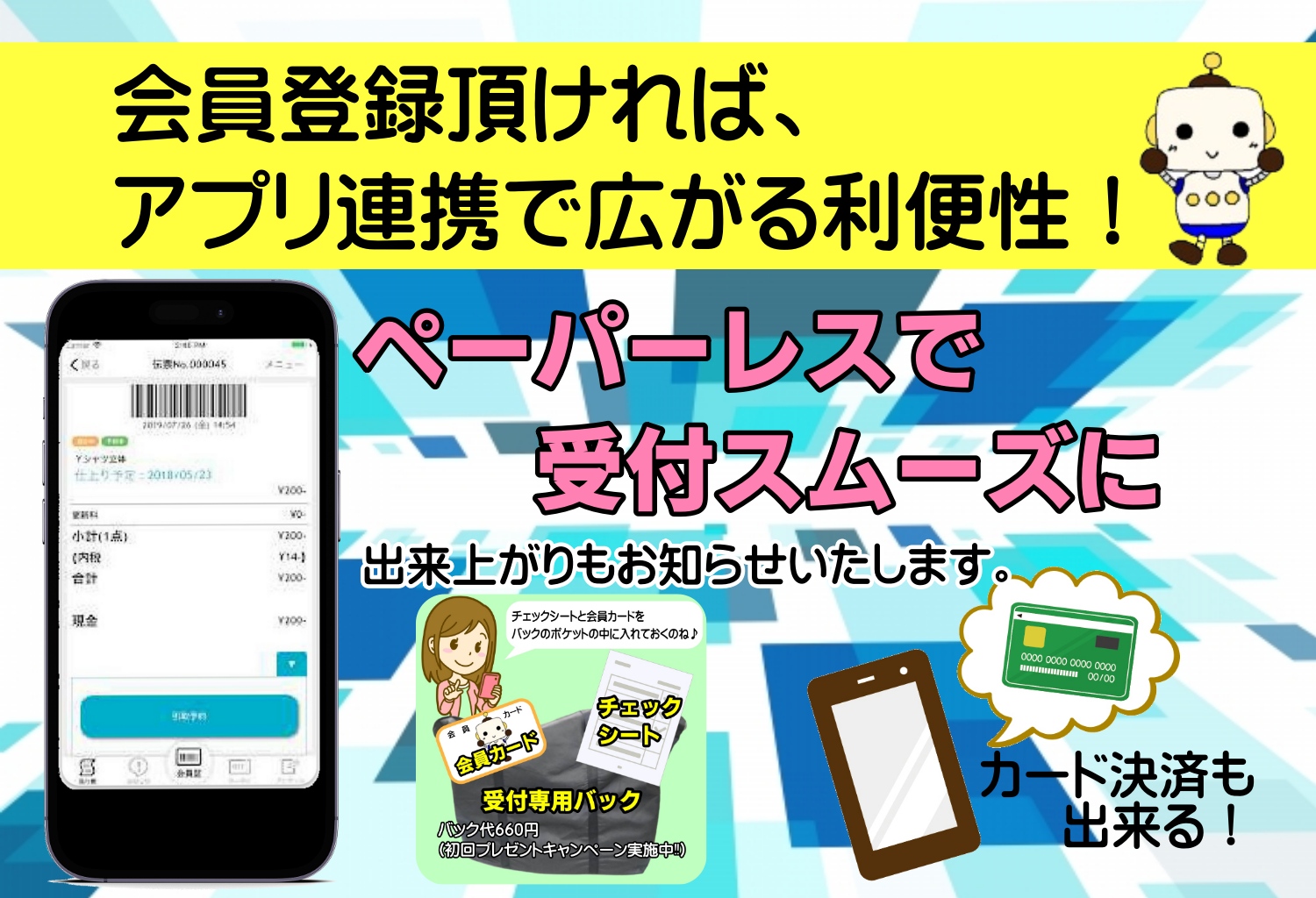 • ペーパーレスでお財布スッキリ(会員カード不要・お預かり票不要)