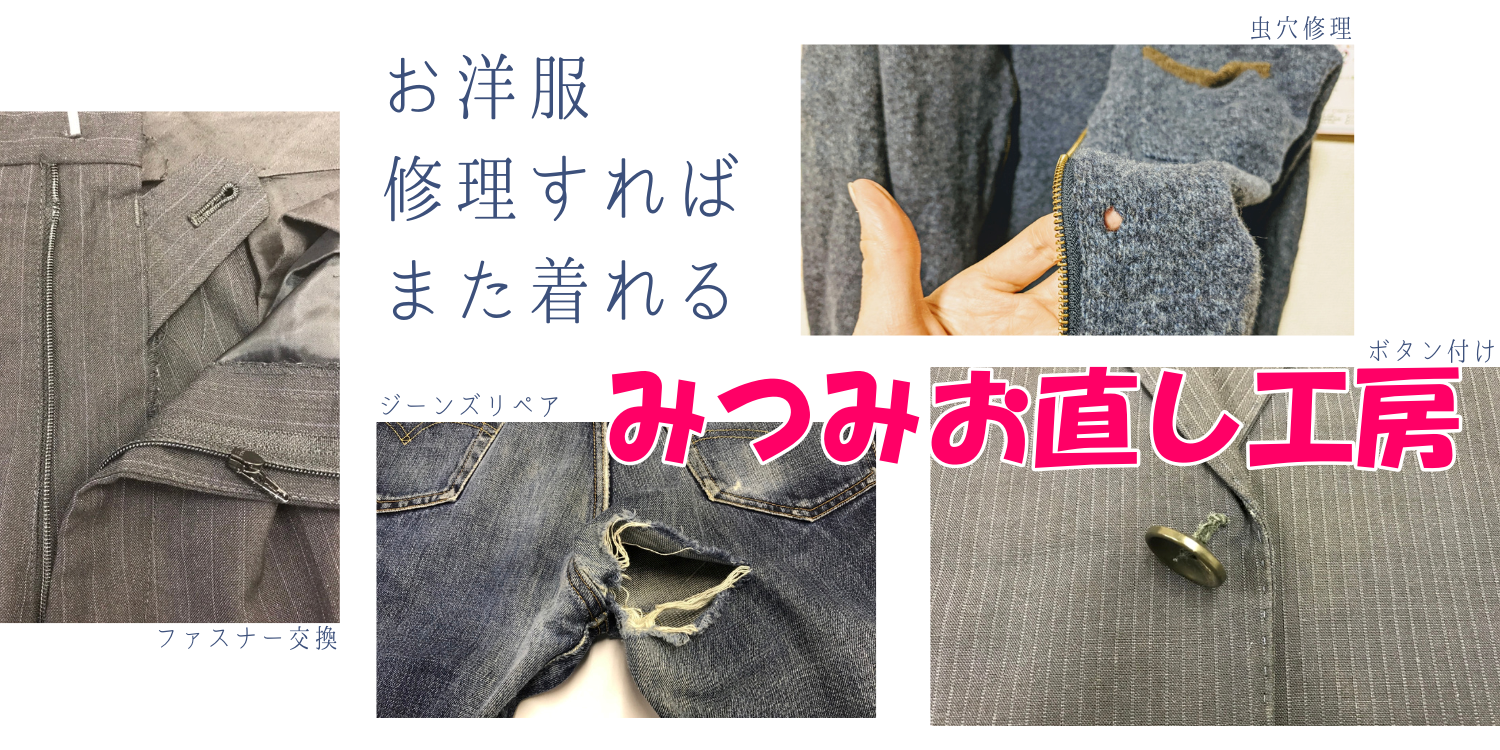 スラックスやパンツ、ブルゾンやコート、バッグやお財布など、ファスナーでお困りの際は、迷わずみつみまでご相談を!