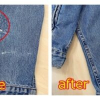 📸股部擦れのリペア🪡 📝股は擦れやすい部分です💦 早めのリペアで、お気に入りのジーンズを長く履いていただけます✨