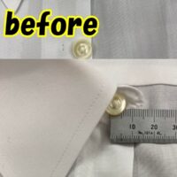 📸ワイシャツのボタン位置変え🪡 📝ワイシャツの第一、第二ボタンの取り付け位置を移動いたしました。 首周りにゆとりが出て着やすくなりました♪ わずかな事でも、気になったらみつみにご相談くださいね。