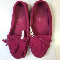 ピンクも鮮やかな、スウェード素材のレディースモカシンです~ 履きやすくてお気に入りのモカシンですが、右足の親指付近が破れてしまいました。とお客様。 状況を見極めた上で、早速、修理に取り掛かります! モカシン …