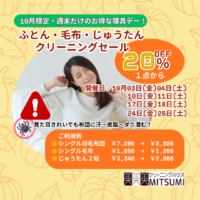 2025年10月1日 お知らせセール布団クリーニング毛布クリーニング