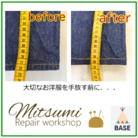 ジーンズ丈上げならクリーニングハウスみつみへ。専門職人がデザインや風合いを保ったまま理想の長さに調整。納期目安10日〜、まずはお気軽にご相談ください。
