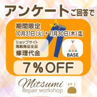 【ショップサイト開設記念】 みつみお直し工房では、お客様の衣類のデザインや素材、状態に合わせてリーズナブルなお直しサービスを提供しています。 10月31日(火)から11月30日(木)まで、アンケートにご協力いただくと、素 …