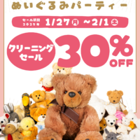 ぬいぐるみクリーニングが30%OFF🎉 1/27〜2/1限定!素材に合わせた丁寧な洗浄でふわふわに。大切な家族であるぬいぐるみを輝く姿にリフレッシュ✨