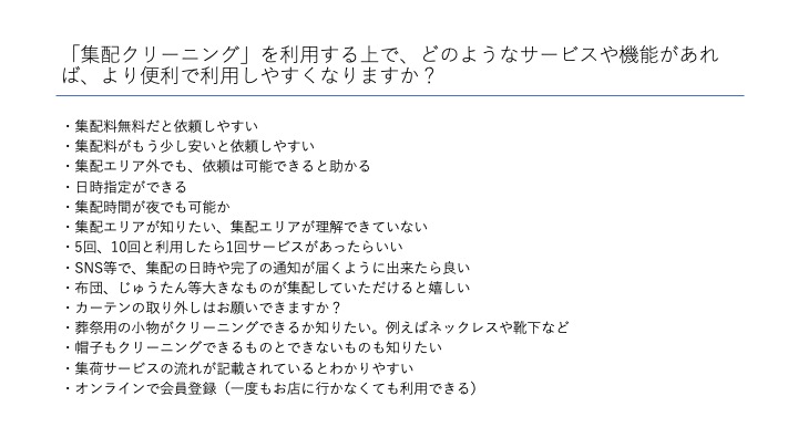 お客様のご意見は当店の集配クリーニングにおいて非常に貴重なものでした。