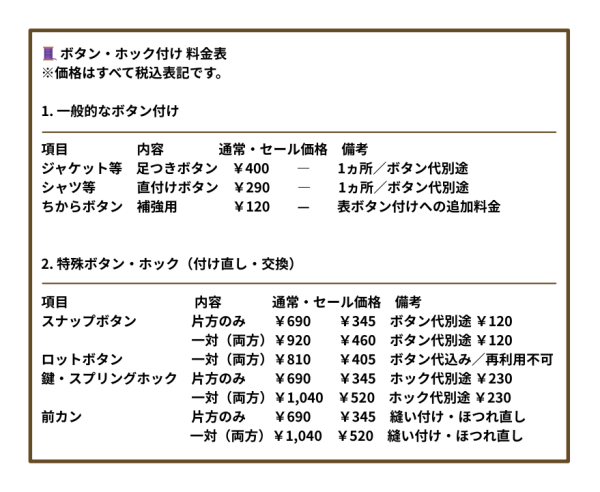 前カン・鍵ホック・スナップボタンは半額でお直しできます。