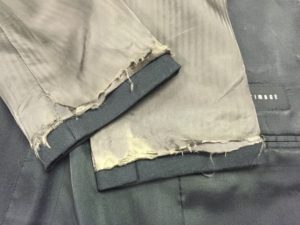 お客様のご希望により、袖口付近のみの修理をさせていただきました。