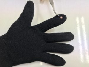 ニット手袋の、指先の穴リペアです。
