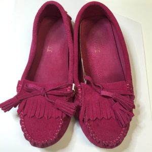 ピンクも鮮やかな、スウェード素材のレディースモカシンです~