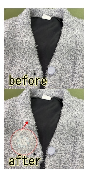 カーディガンの首元が開きが広くて寒いので狭くする方法はありますか?とのご相談にお応えいたしました。お受け取りにご来店されたお客様から笑顔をいただくことができました❤