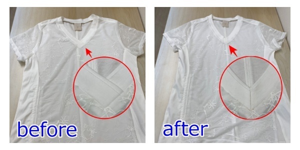📸カットソーTシャツ・襟元Vネック直しの対応事例