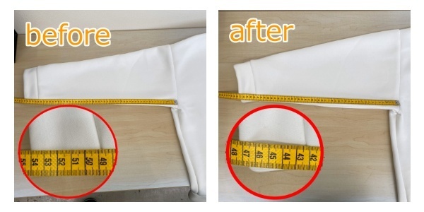 📝トレーナーの袖丈を7.5㎝丈詰めいたしました。オーバーサイズのトレーナーを購入されたお客様。試着して買ったけれど、袖丈が長いのが気になったので丈を短くしたいとのご依頼でした。最初は10㎝短くとのご希望でしたが、肩幅と腕の長さのサイズをいただいて、ご相談の上で7.5㎝に決めました。受け取り後のご来店で「袖の長さ、ちょうど良かったです!」とのお言葉を頂きました♪♪