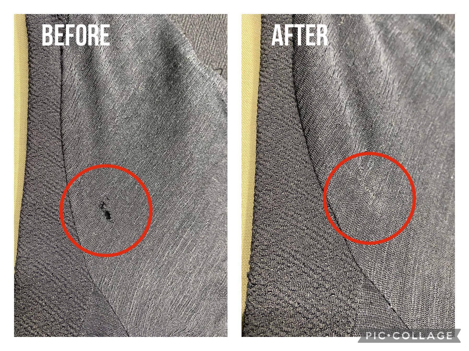 📝糸切れと目落ちの複合穴でしたので、縫い詰めで修理させて頂きました‼️