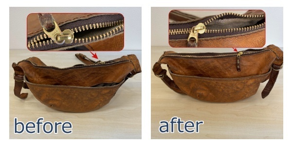 📝バックのスライダーを交換させていただきました。ファスナーが閉じなくなってバックが使えない状態でしたが、スライダーを交換することでファスナーが閉じて再びバックが使えるようになり喜んでいただけました♪