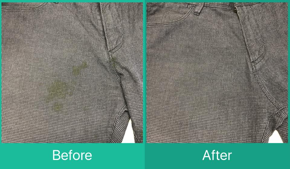 当店では素材に合わせたシミ抜きを行って、ご覧のようにキレイにいたしました〜