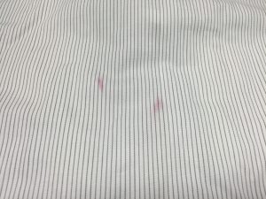 シミ抜きのセオリーを守り、基本に則った処理をして、綺麗にさせていただきました。